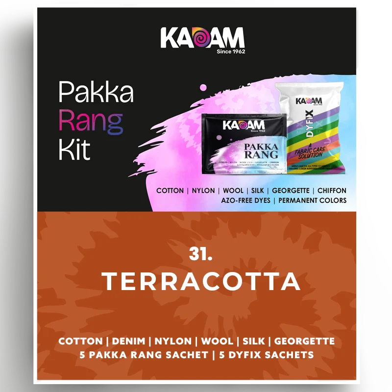 Kadam Pakka Rang Fabric Dye for Clothes Permanent, Cloth Dye Powder, Fabric Dye Clothes, Dye for Faded Jeans, 10 sachets of Shade 31 Terracotta Colour